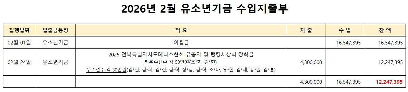 2026년 2월 유소년기금 현황 자료를 업로드합니다.