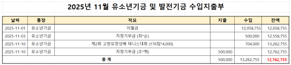25년 11월 유소년기금 현황 자료를 업로드합니다.