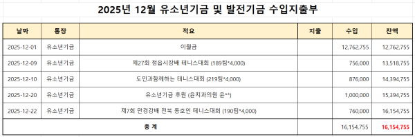 25년 12월 유소년기금 현황 자료를 업로드합니다.